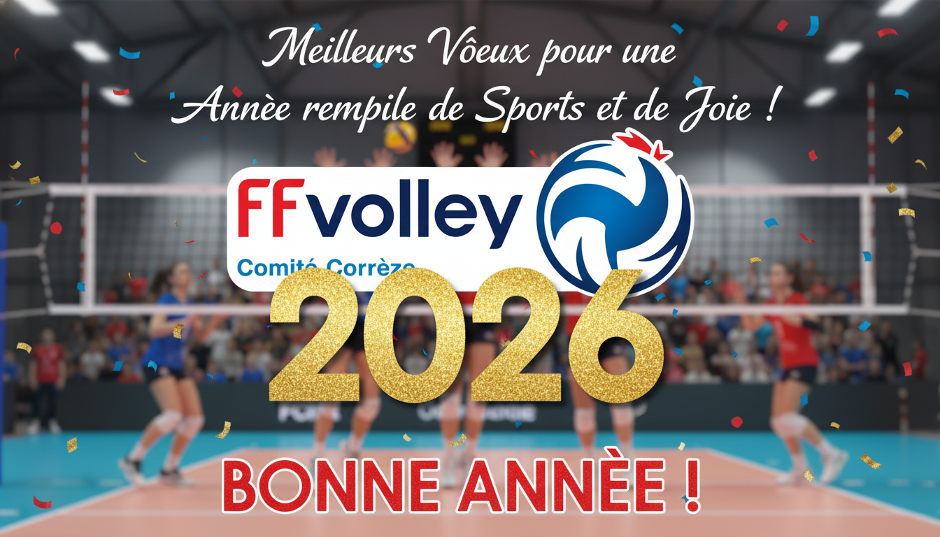 En ce début d’année 2026, le Comité Départemental de la Corrèze souhaite vous adresser ses vœux les plus sincères et les plus sportifs ! Que cette nouvelle année soit pour vous synonyme de passion, de dépassement et de victoire, à l’image des valeurs que nous partageons sur les terrains de volley-ball.
